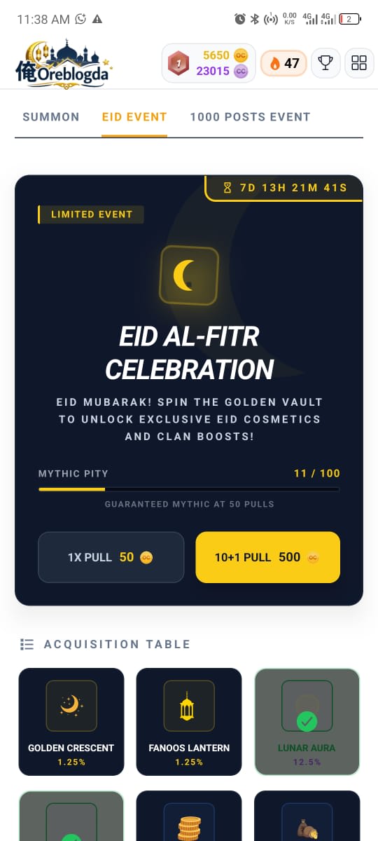 The New Events has started login now to see the new Special Interface and events Login before Tuesday to Claim 1000 OC Use OC to spin in the Eid event...