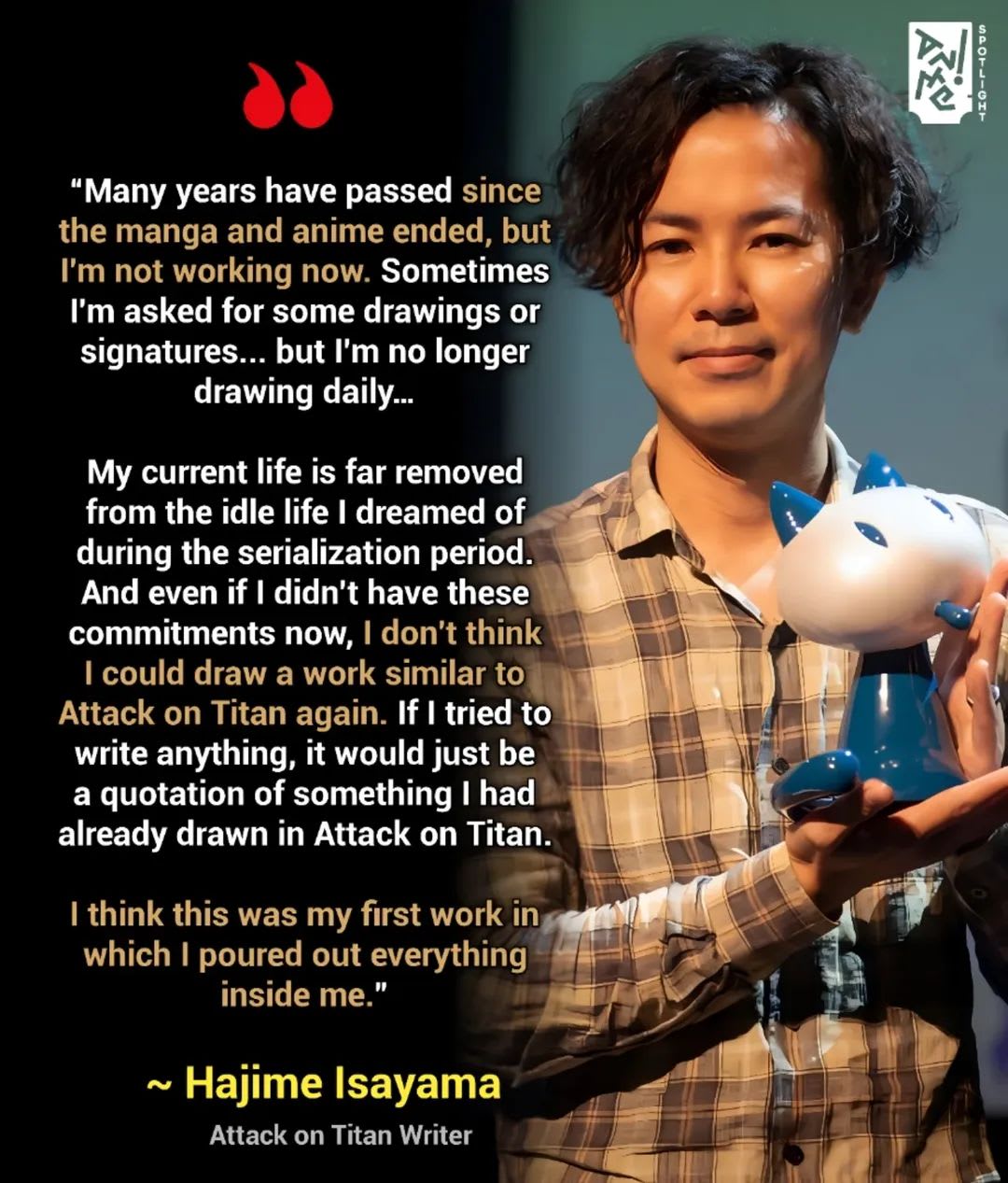 Isayama officially says he's empty. He put every thought and emotion into AoT, and honestly, we felt it. Respect to the creator for knowing when the story is truly finished. 🧣 #AttackOnTitan #Legend