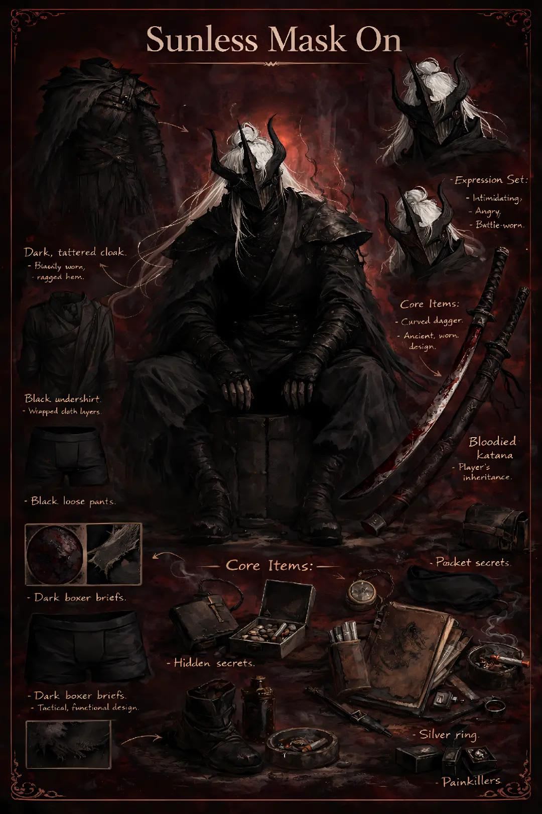 Sunless does not dominate through brute force at least, not at first. His greatest weapon is his mind. Cunning, observant, and ruthlessly pragmatic, he survives by seeing what others miss and doing what others hesitate to do.