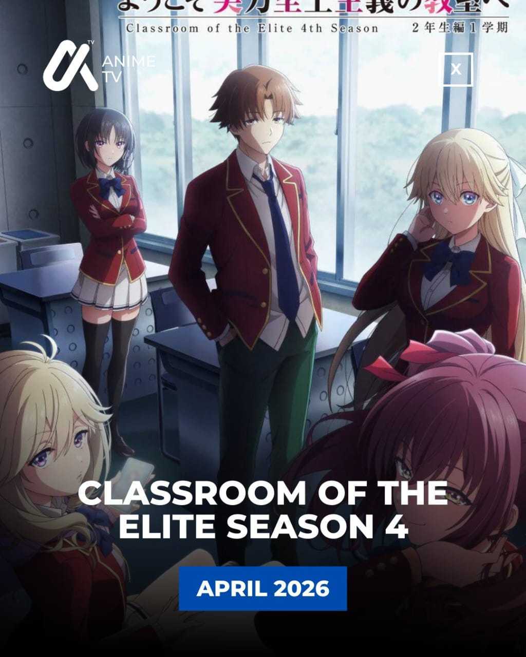 'Classroom of the Elite IV' (SEASON 4) is Coming to Crunchyroll in April 2026.