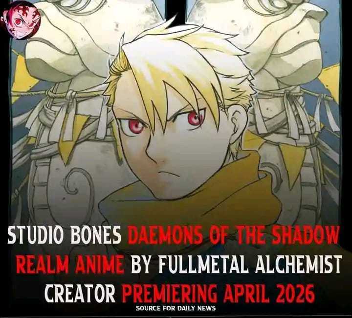 Studio BONES has officially announced that Daemons of the Shadow Realm, a brand-new anime from the creator of Fullmetal Alchemist, is set to air in April 2026. The highly anticipated series brings together the acclaimed storytelling of Hiromu Arakawa with BONES’ signature high-quality animation, raising expectations among anime fans worldwide. More details about the cast, staff, and broadcast schedule are expected to be revealed in the coming months.